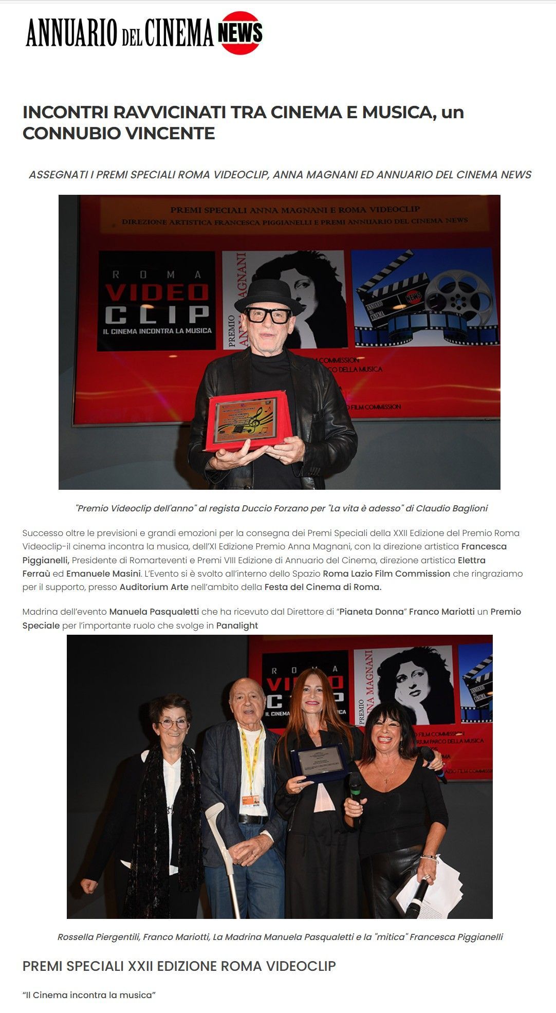 PREMI SPECIALI XXII EDIZIONE ROMA VIDEOCLIP
