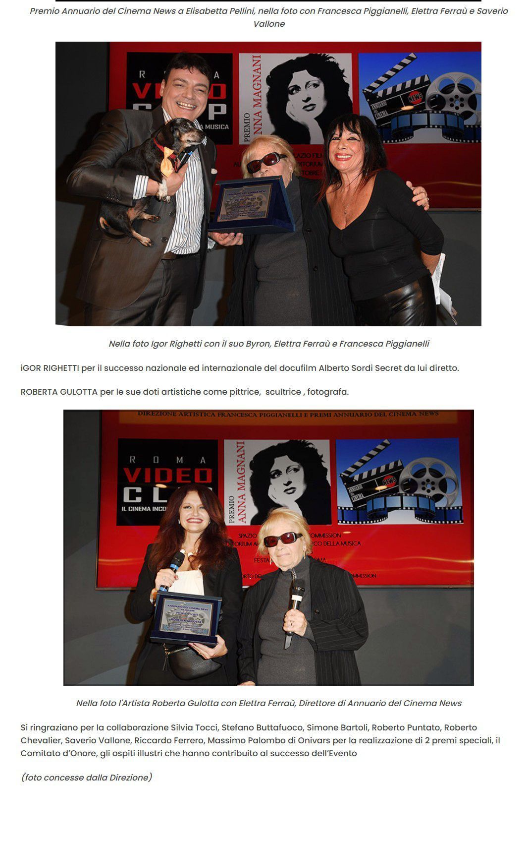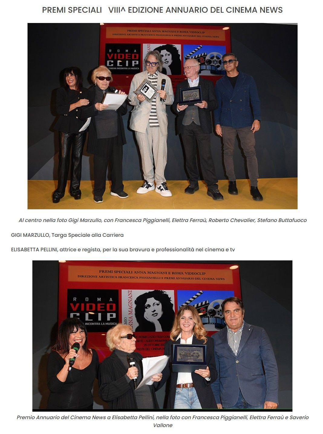 PREMI SPECIALI VIII^ EDIZIONE ANNUARIO DEL CINEMA NEWS.