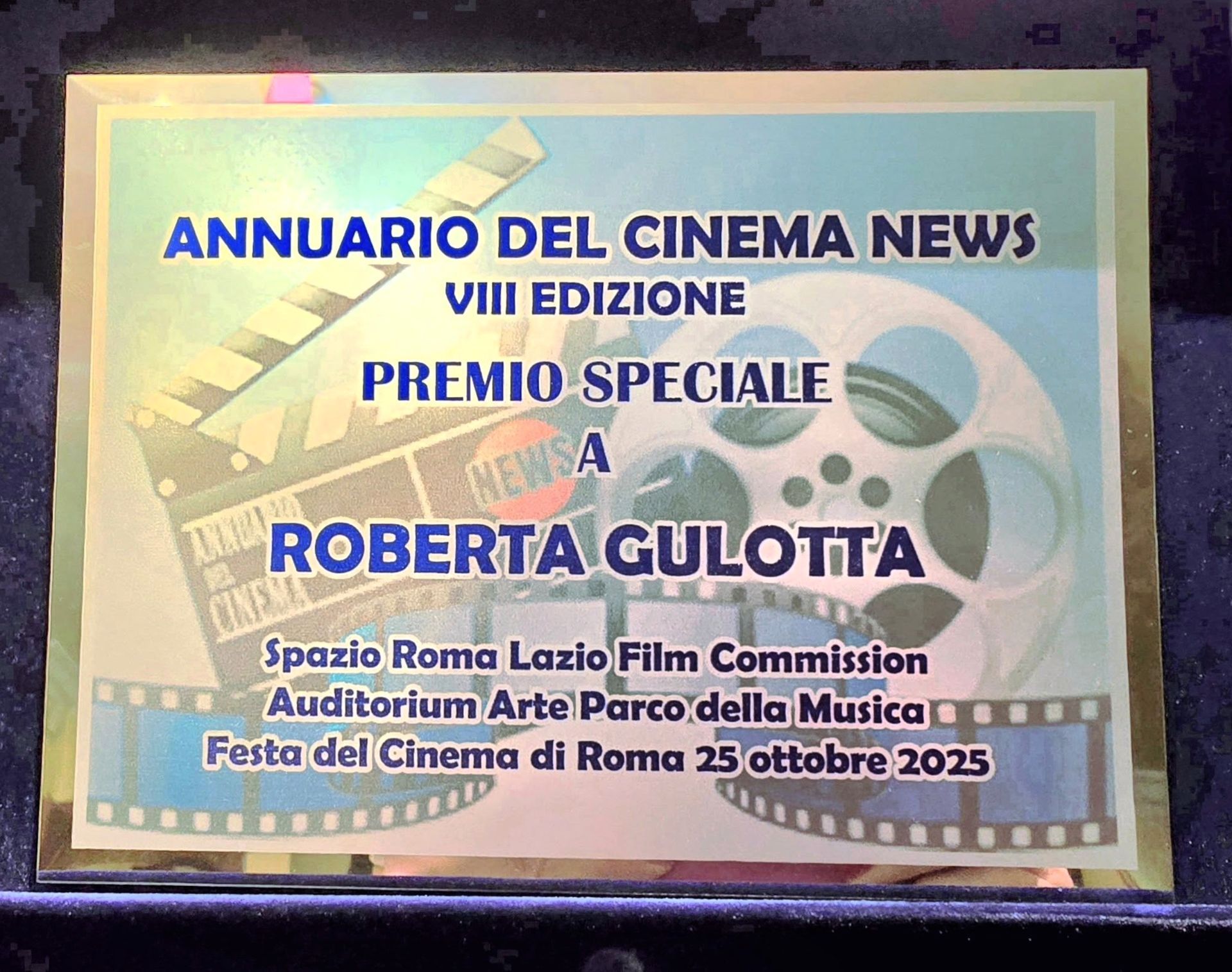 CONFERIMENTO del "PREMIO SPECIALE - ANNUARIO DEL CINEMA NEWS 2025" presso gli spazi della "Roma Lazio Film Commission" Auditorium Arte nell’ambito della "Festa del Cinema di Roma".